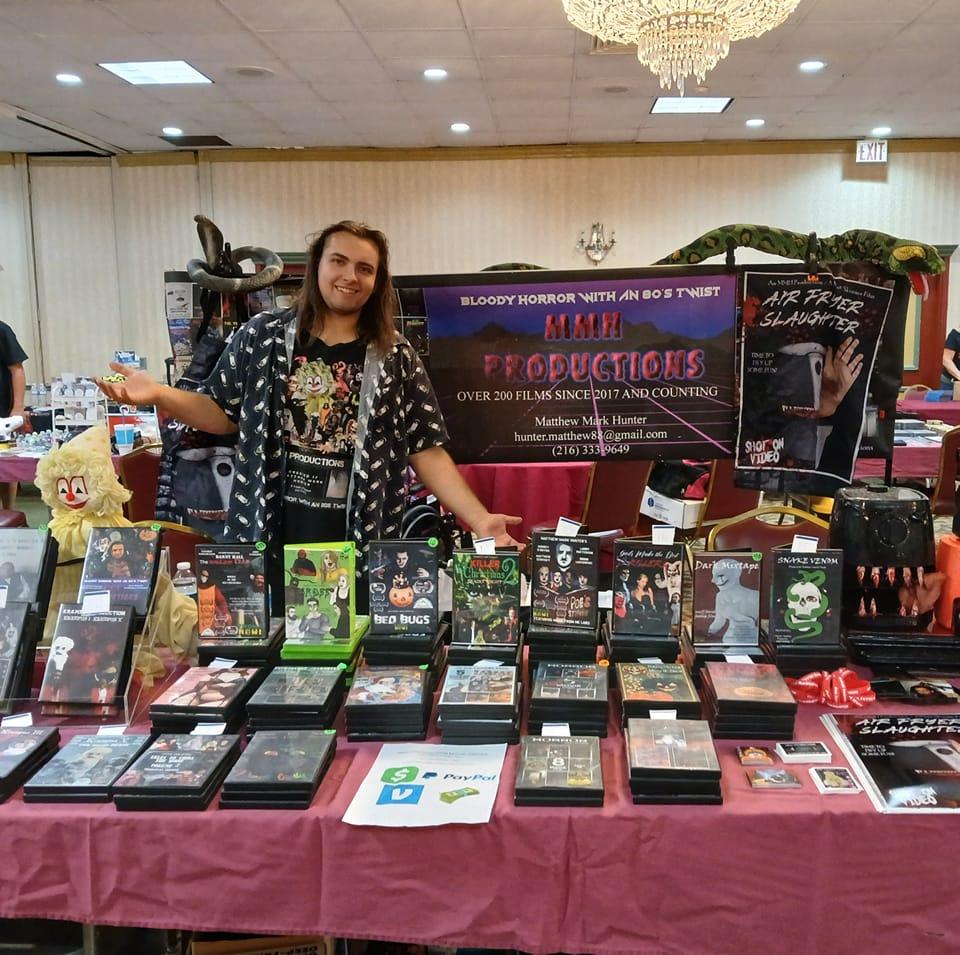 Matthew Mark Hunter is an Award Winning Filmmaker and creator of MMH Productions and over 260 Horror films since 2017. He started at the age of 17 and now is 25 always creating new monsters and terror. His motto is Bloody Horror with an 80’s Twist as a lot of his pojects are quite bloody with ample practical effects and bringing things to life like his film, Air Fryer Slaughter that screened last night. Alongside practical effects, Matthew will film movies on a VHS Camcorder and edit on VCR like he did for Air Fryer so the film has a real authentic feel to it, rather than using a filter in post-production. His biggest inspirations have been from Full Moon and Troma Entertainment and Matthew has been lucky to both work alongside Charles Band and have his movies streaming on Troma Now and have LLoyd Kaufman in 8 of his movies already and more to come! Alongside horror films, he is a host of his three family friendly puppet children’s shows on YouTube. Matthew also teaches filmmaking, photography, theatre, and five others through the Scouts of America Program as a certified counselor.
